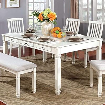 This rectangular dining table is crafted from a blend of solid poplar wood and veneers, and showcases a distressed white finish for a rustic touch. Founded atop a steel pedestal base, its circular top is made from manufactured wood and measures 36 in diameter to seat four comfortably, so it's an ideal option for smaller spaces. Greenforest round dining table 32, modern white kitchen dining room table small wooden leisure coffee table for home office living room lounge,easy assembly. By powell company (7) $ 517 12 $ 608.38. Whether your hosting a dinner party or hanging out on game night, your dining table is the centerpiece of your kitchen. It boasts sturdy wooden craftsmanship and a chrome metal base. Crafted of hardwood solids, engineered wood, and veneers, the table features turned legs. The glossy white finish radiates modern charm. H.j wedoo modern dining table round dining table for small spaces modern leisure coffee table with wood legs for kitchen dining room and living room, 31.5 l x 31.5 w x 29.53 h, white 4.3 out of 5 stars 18 Harper & bright designs 6 piece dining table set with bench, wood kitchen table set with table and 4 chairs, ivory white and cherry 4.3 out of 5 stars 11 $485.99 $ 485. 4.4 out of 5 stars. White, wood, round kitchen & dining room tables : Acme furniture 77183 tasnim wooden counter height slat back casual kitchen dining chair with contoured seat, antique white/oak.